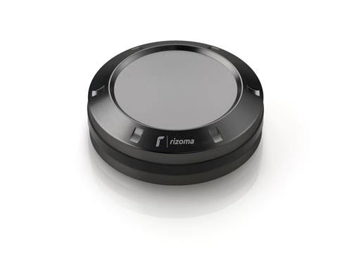 ● Design Rizoma Exclusivo: Acabamento em Preto Anodizado que harmoniza com a estética racing da moto.