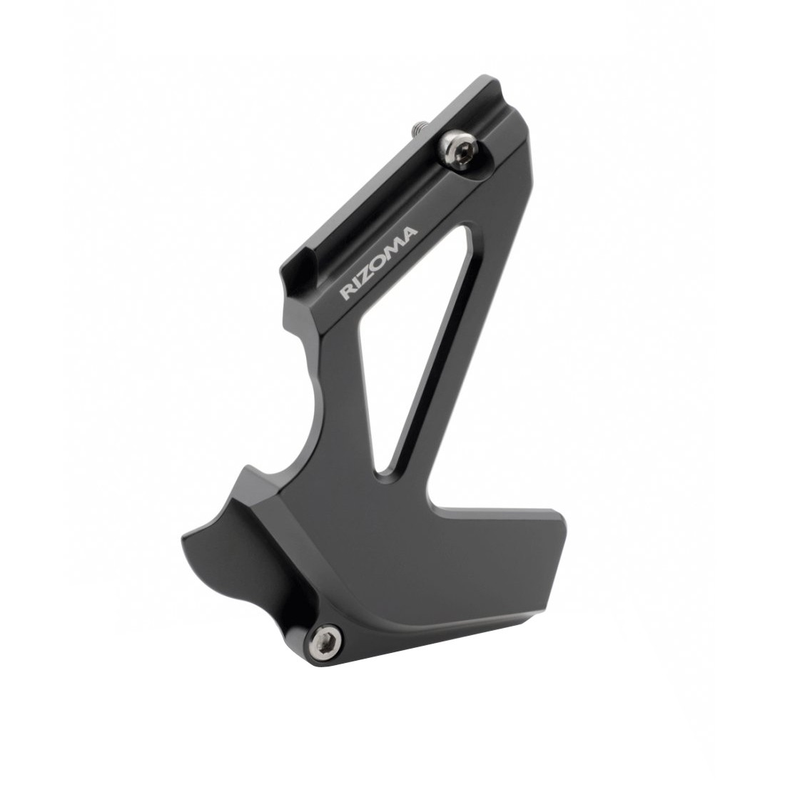 Fabricada em Alumínio Billet e usinada em CNC com precisão milimétrica, ela apresenta aberturas estratégicas que permitem a visualização parcial do pinhão, remetendo ao visual das motos de competição. O acabamento Anodizado Preto (Black) garante durabilidade contra o desgaste causado por detritos da corrente e produtos químicos, mantendo o aspecto de peça nova por muito tempo.